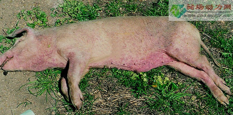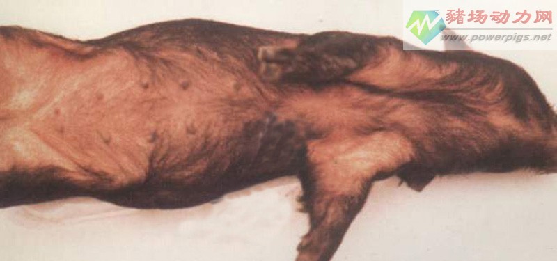 【猪链球菌病】败血型病理变化体表弥漫性发绀、出血